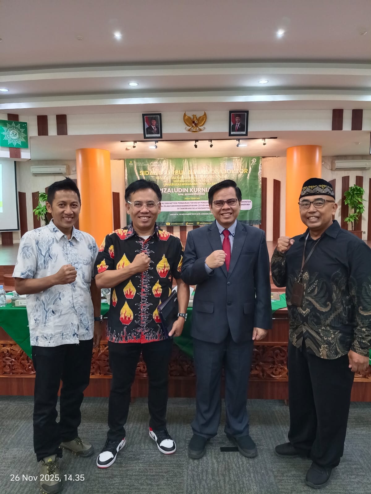 Sidang berlangsung di hadapan para promotor dan dewan penguji yang dipimpin langsung oleh Rektor UMJ, Prof. Dr. Ma’mun Murod, M.Si.
