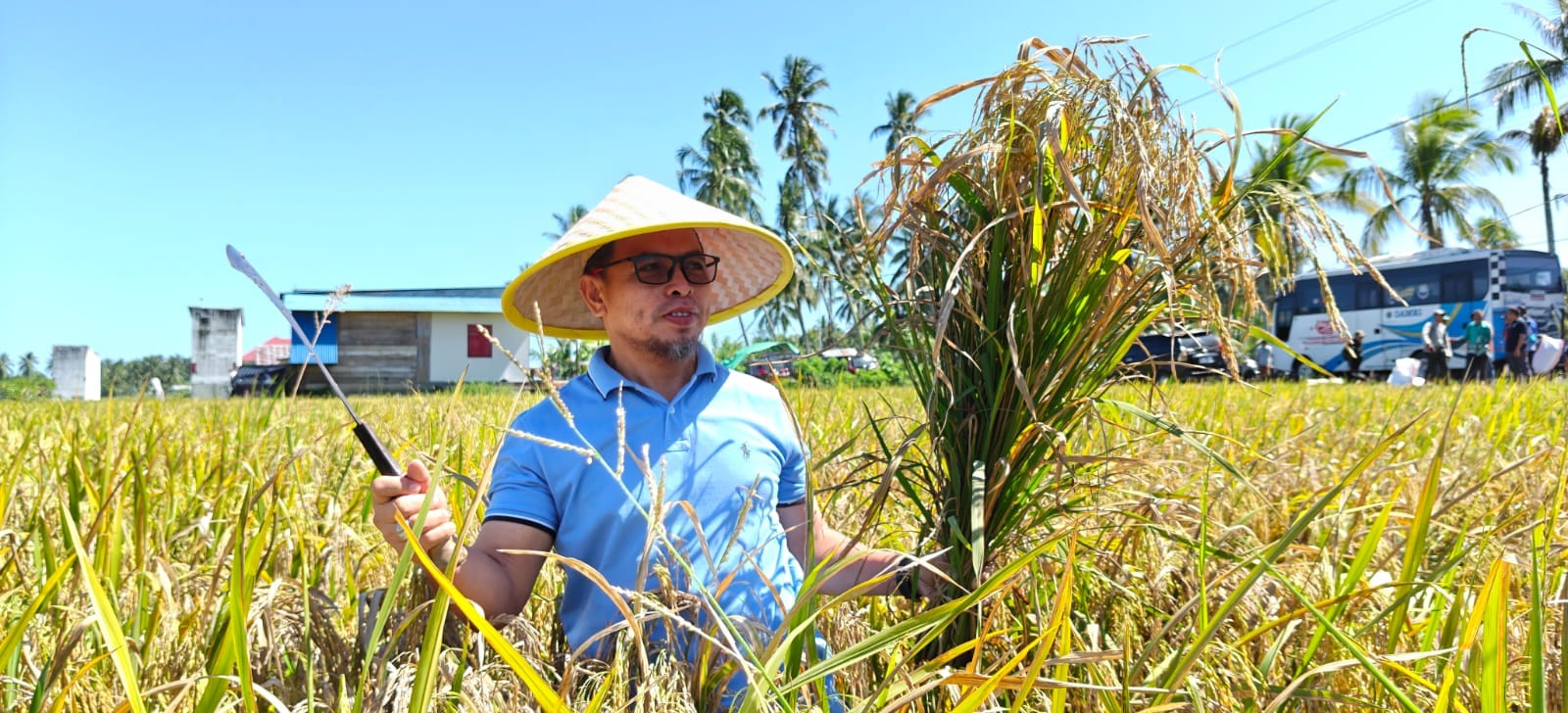 Jaga Kedaulatan Pangan Boltara, Sirajudin Lasena Turun Sawah Panen Padi di Bintauna