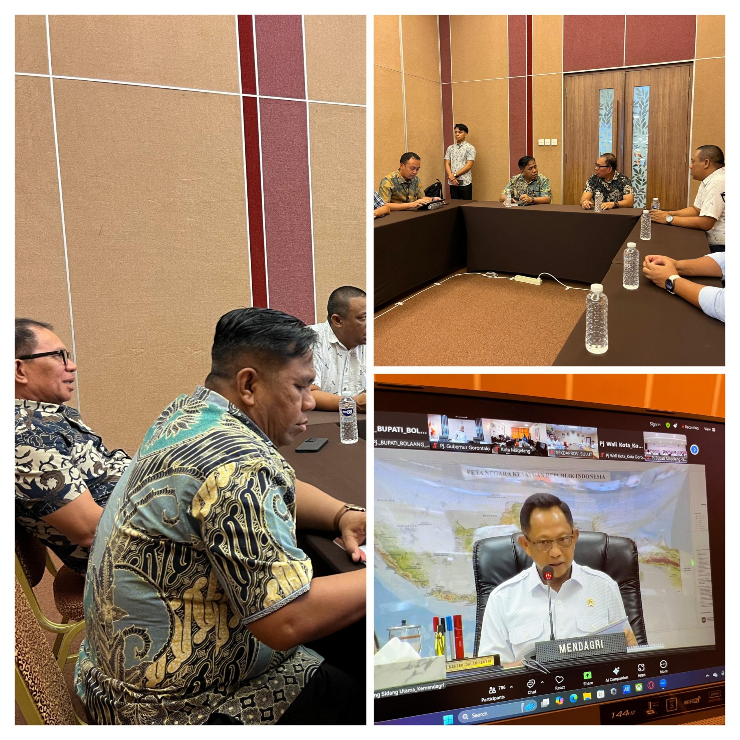 Penjabat (Pj) Bupati Darwin Muksin, S.Sos, MM, bersama Sekertaris Daerah, Kepala BKPSDM, Kepala BPKAD Mengikuti dengan seksama. Dalam rapat ViCon (zoom) yang dihadiri seluruh Bupati, Walikota se-Indonesia, untuk penyelesaian penataan tenaga Non ASN, yang dipimpin langsung oleh Menteri Dalam Negeri (Mendagri) Republik Indonesia (RI), bertempat di Grand G7 Hotel pasar baru Jakarta, Rabu (08/01/2025).