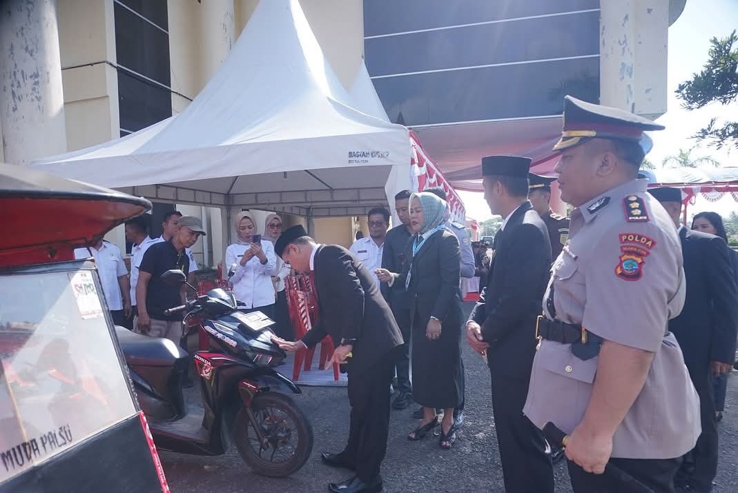 Peluncuran ditandai dengan pemasangan stiker digital pada kendaraan roda dua dan bentor, sebagai langkah menuju digitalisasi layanan publik yang transparan dan efisien.