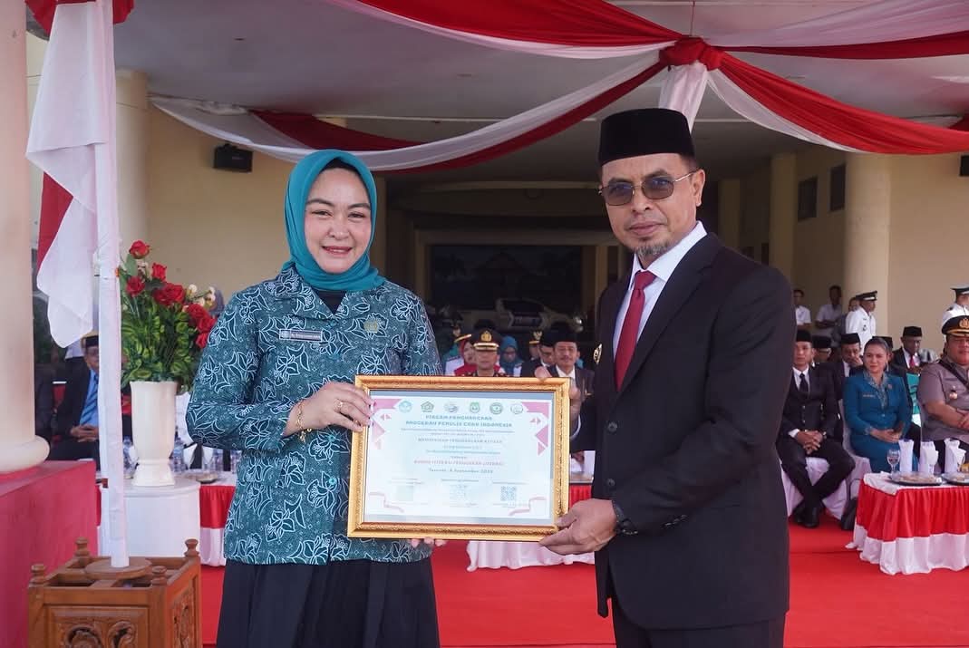 Pada kesempatan yang sama, dilakukan penyerahan Piagam Penghargaan Anugerah Penulis Guru Indonesia kepada Ny. Ening Sutrisni Lasena Adam, S.ST., selaku Bunda Literasi Boltara. Penghargaan ini sebelumnya diterima dalam acara di Ternate pada 6 September 2025, dan secara resmi diserahkan oleh Bupati Boltara kepada Ketua TP PKK sebagai bentuk apresiasi atas peran aktif dalam penggerakan literasi daerah.